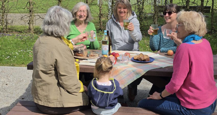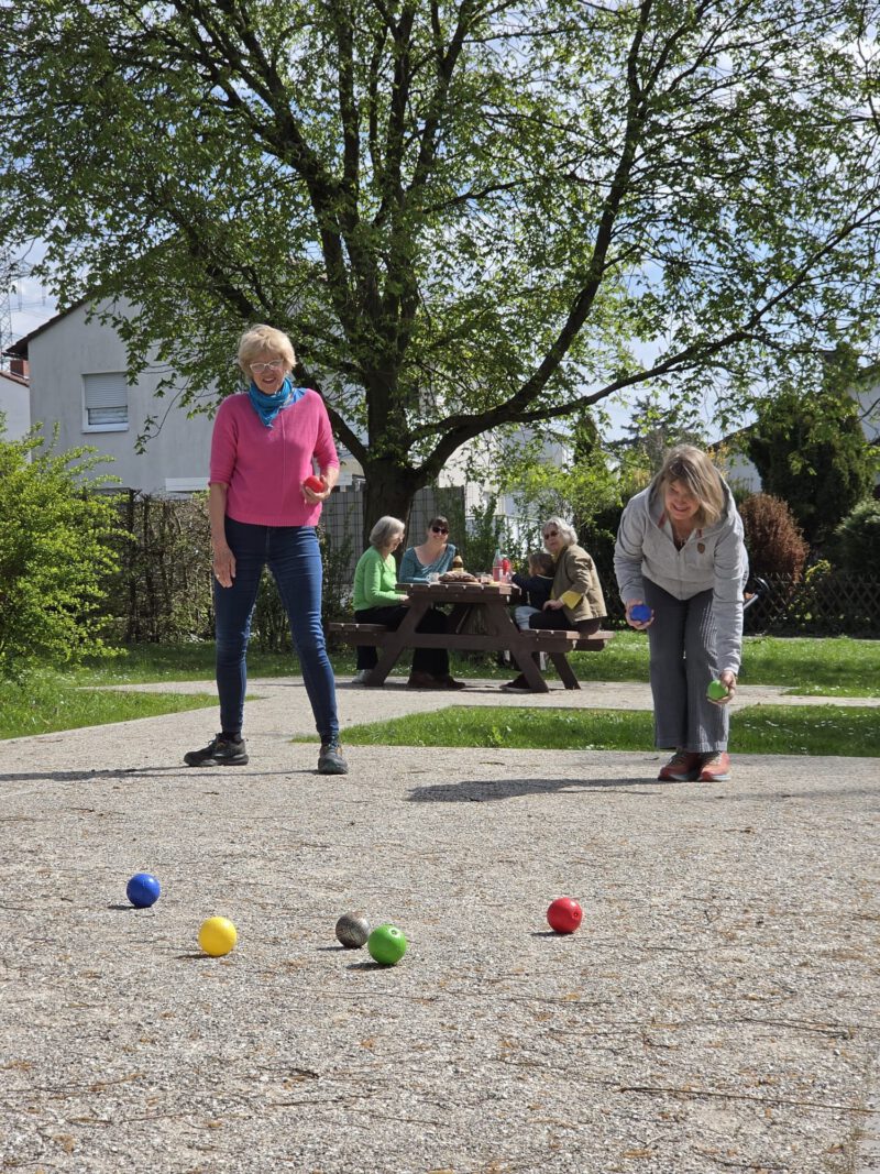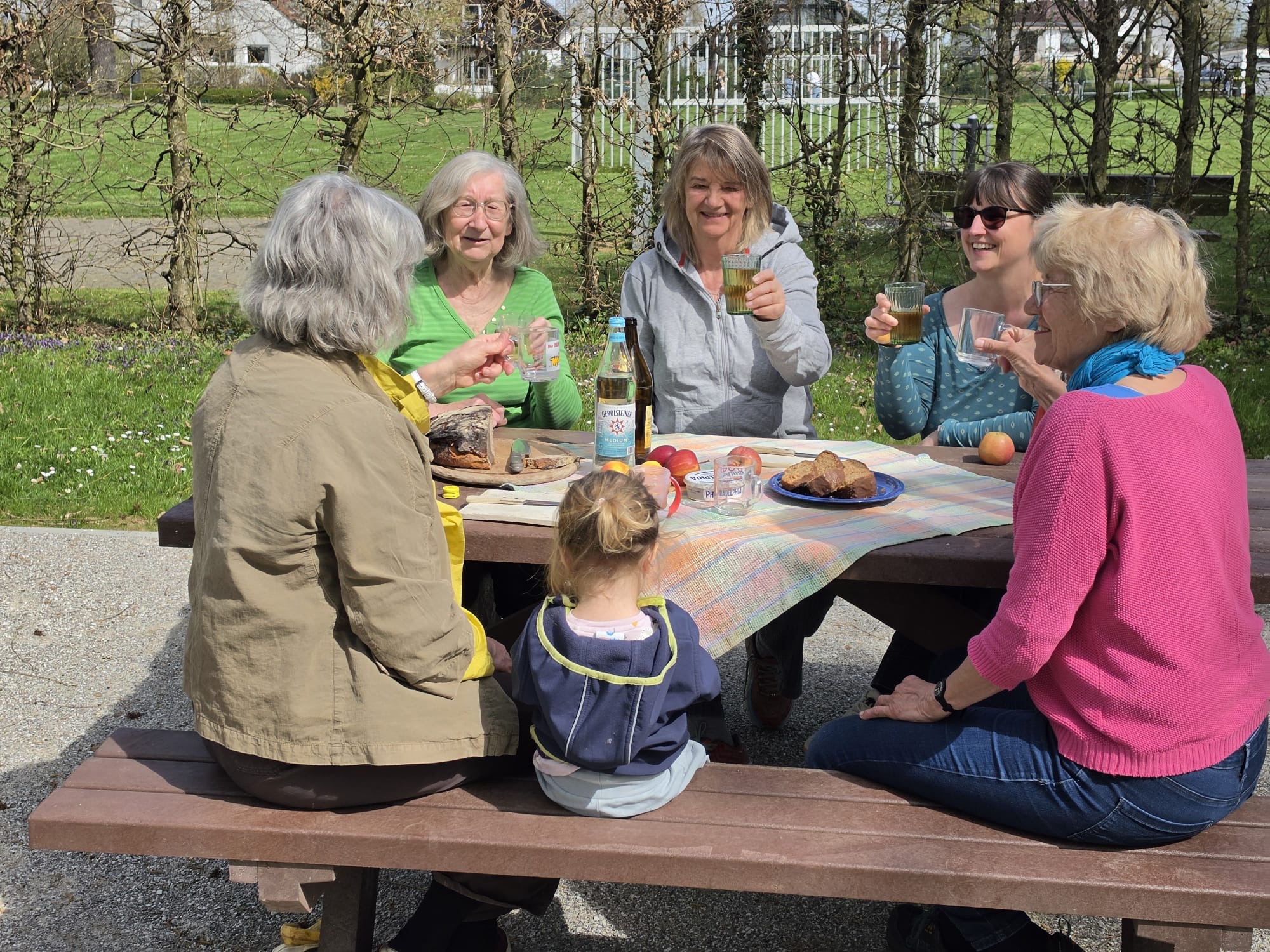 Bei herrlicher Frühlingssonne trafen sich einige der Bauernheimer Grünen Frauen im Park, um mit einem Brunch am Picknicktisch die Saison an der Boulebahn zu eröffnen.
