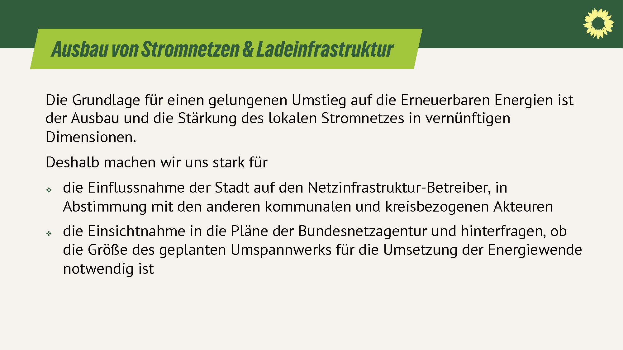 Die Grundlage für einen gelungenen Umstieg auf die Erneuerbaren Energien ist der Ausbau und die Stärkung des lokalen Stromnetzes in vernünftigen Dimensionen.