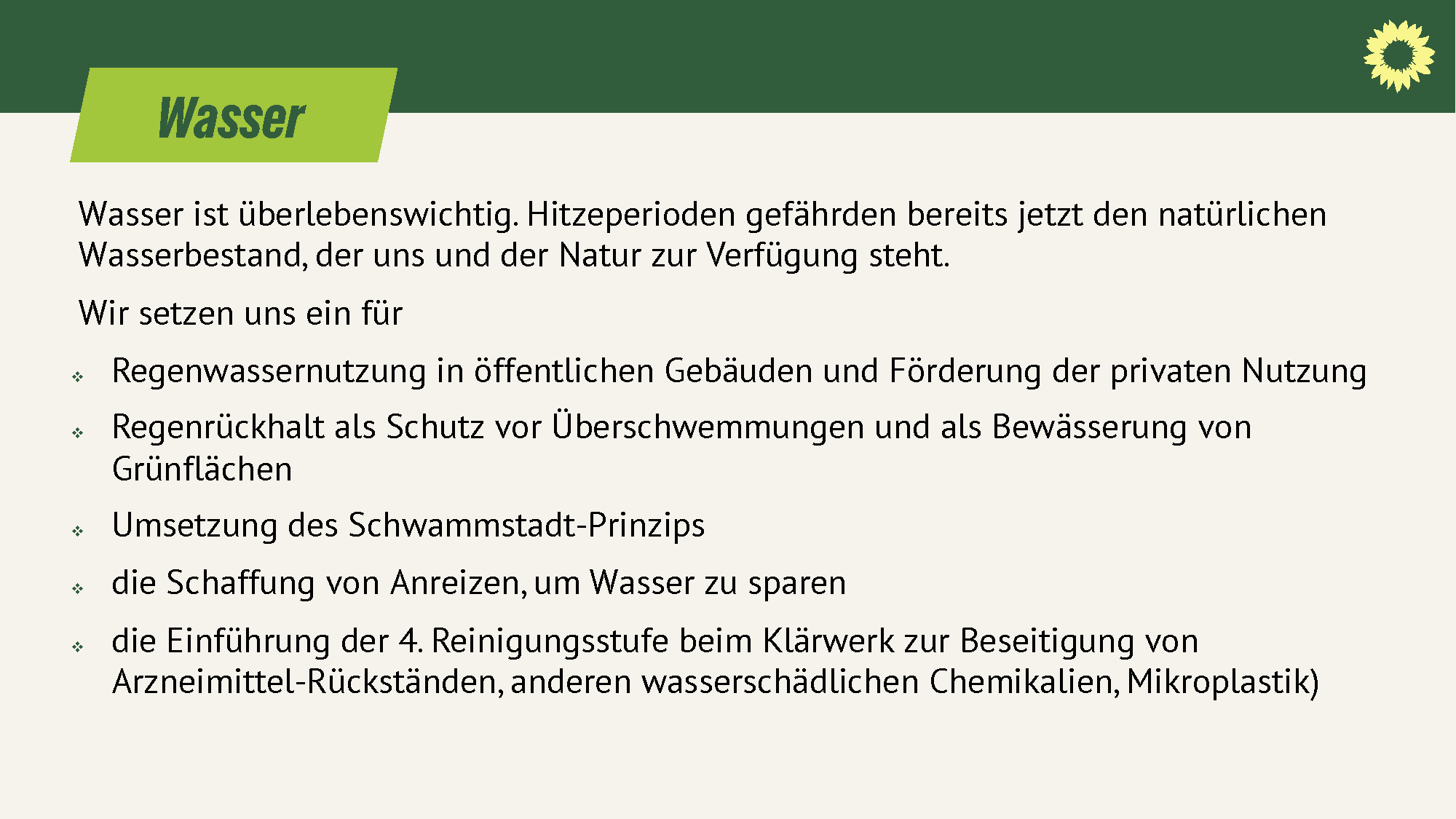 - die Schaffung von Anreizen, um Wasser zu sparen