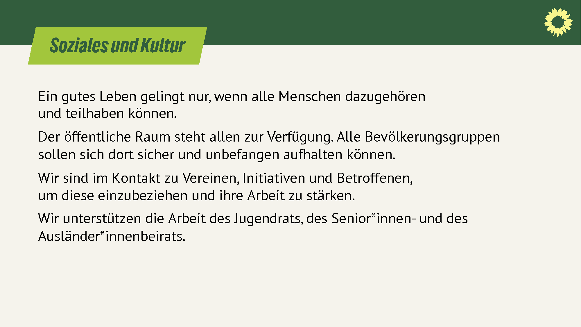 Wir unterstützen die Arbeit des Jugendrats, des Senior*innen- und des Ausländer*innenbeirats.