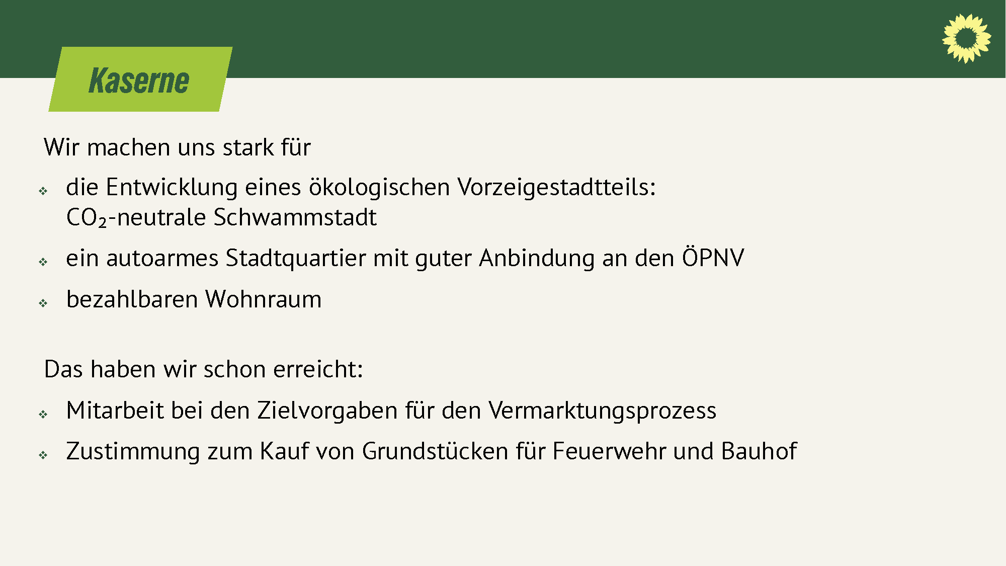 Wir machen uns stark für die Entwicklung eines ökologischen Vorzeigestadtteils: