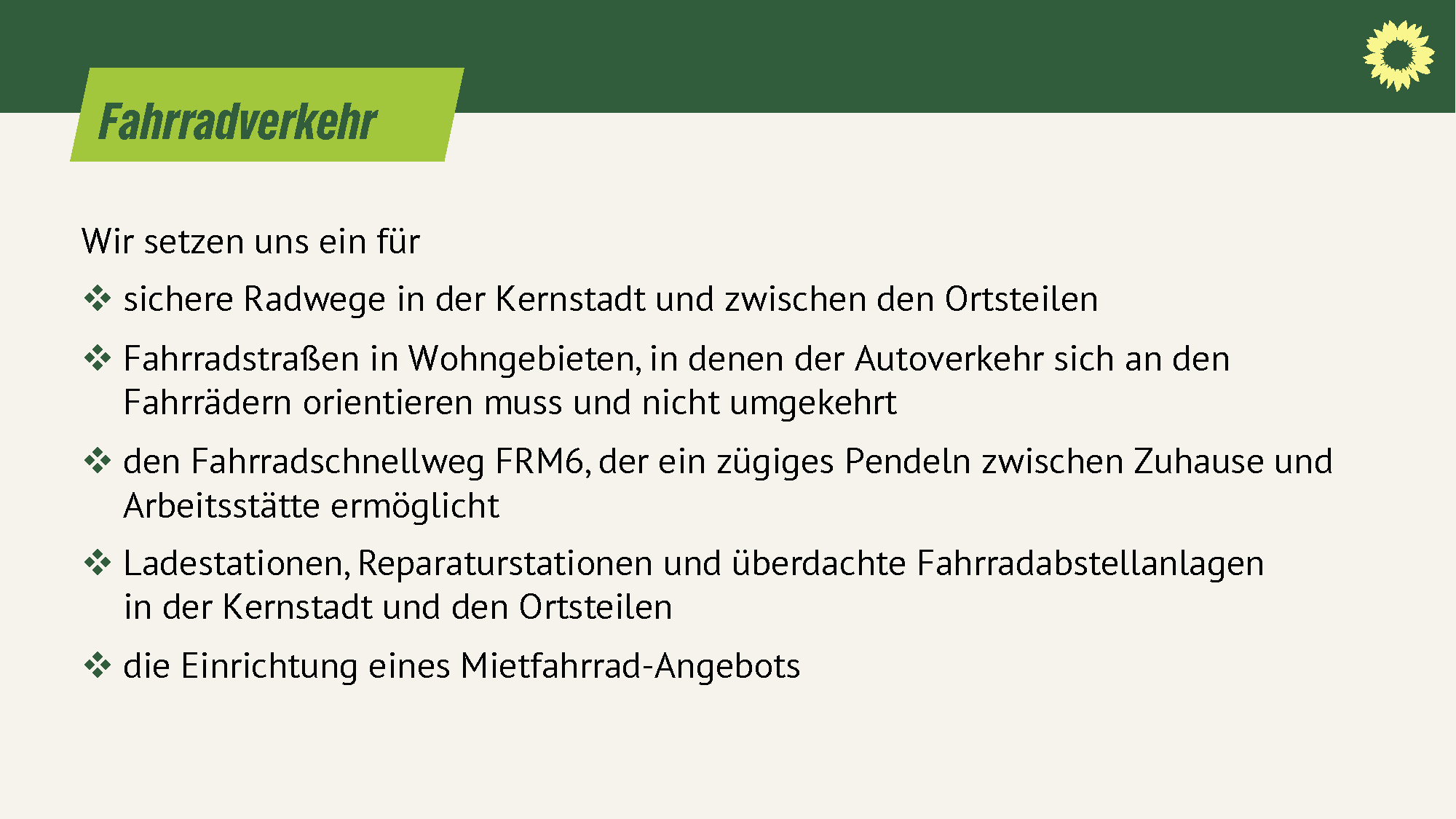 - sichere Radwege in der Kernstadt und zwischen den Ortsteilen