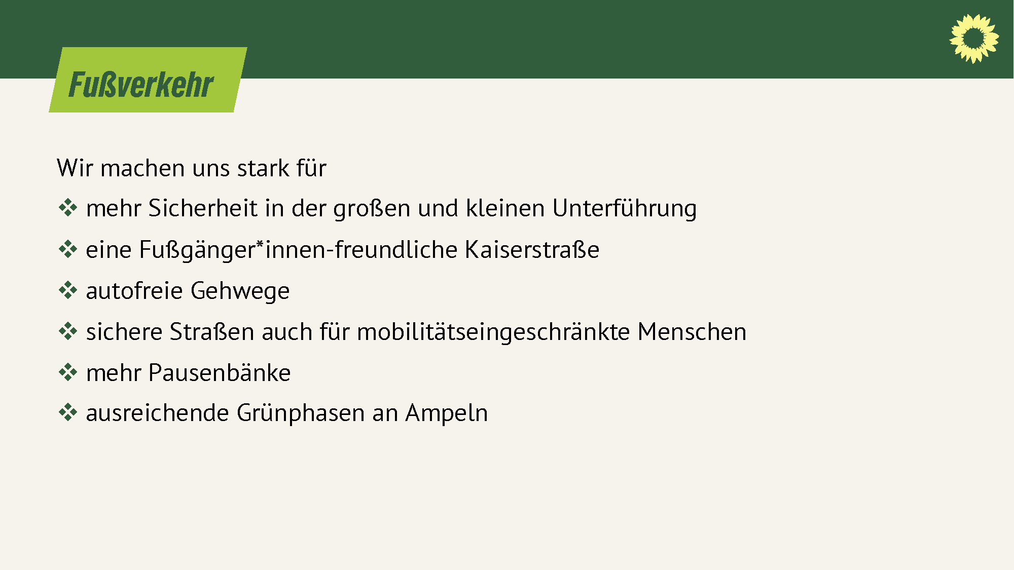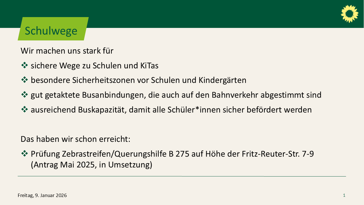 - sichere Wege zu Schulen und KiTas