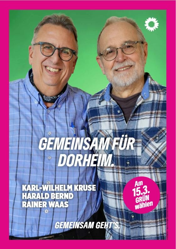 Für den Ortsbeirat Dorheim kandidieren Karl-Wilhelm (Charly) Kruse auf Listenplatz 1, Harald Bernd auf Listenplatz 2 und Rainer Waas auf Listenplatz 3.